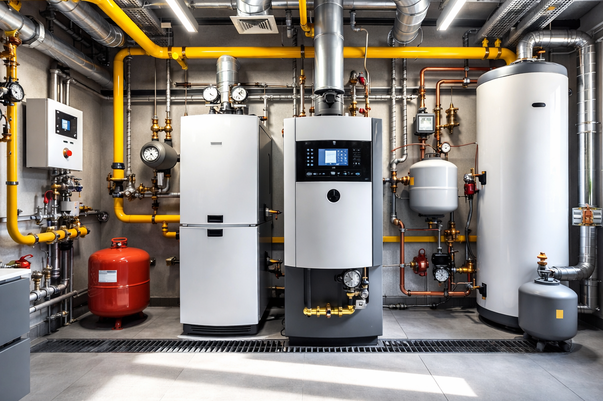 Kotle na tuhá paliva, Plynové kotle, Tepelná čerpadla